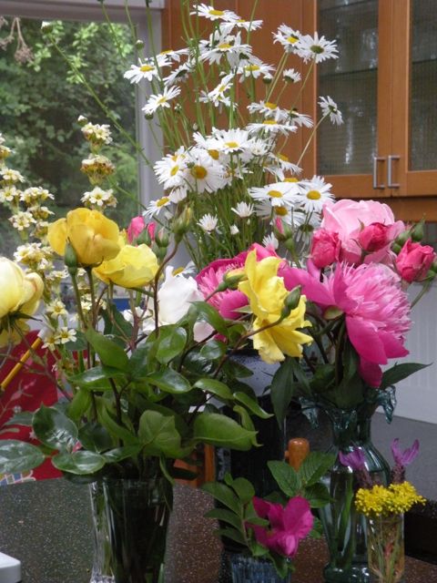 I took this photo in the late afternoon. I wanted to capture the mostly glass objects in the kitchen window from the outside. It was kind of a joke. We were kidding around about how valuable they were, which they are not. And we were saying that we should have a photo for insurance purposes, and in case the Met wanted to buy the collection. So I took a photo, several actually. This one really struck me because of the reflection in the glass of the sky and the trees behind where I was standing. That was not what I was seeing at all. I just focused on the objects, and look what else I else got.