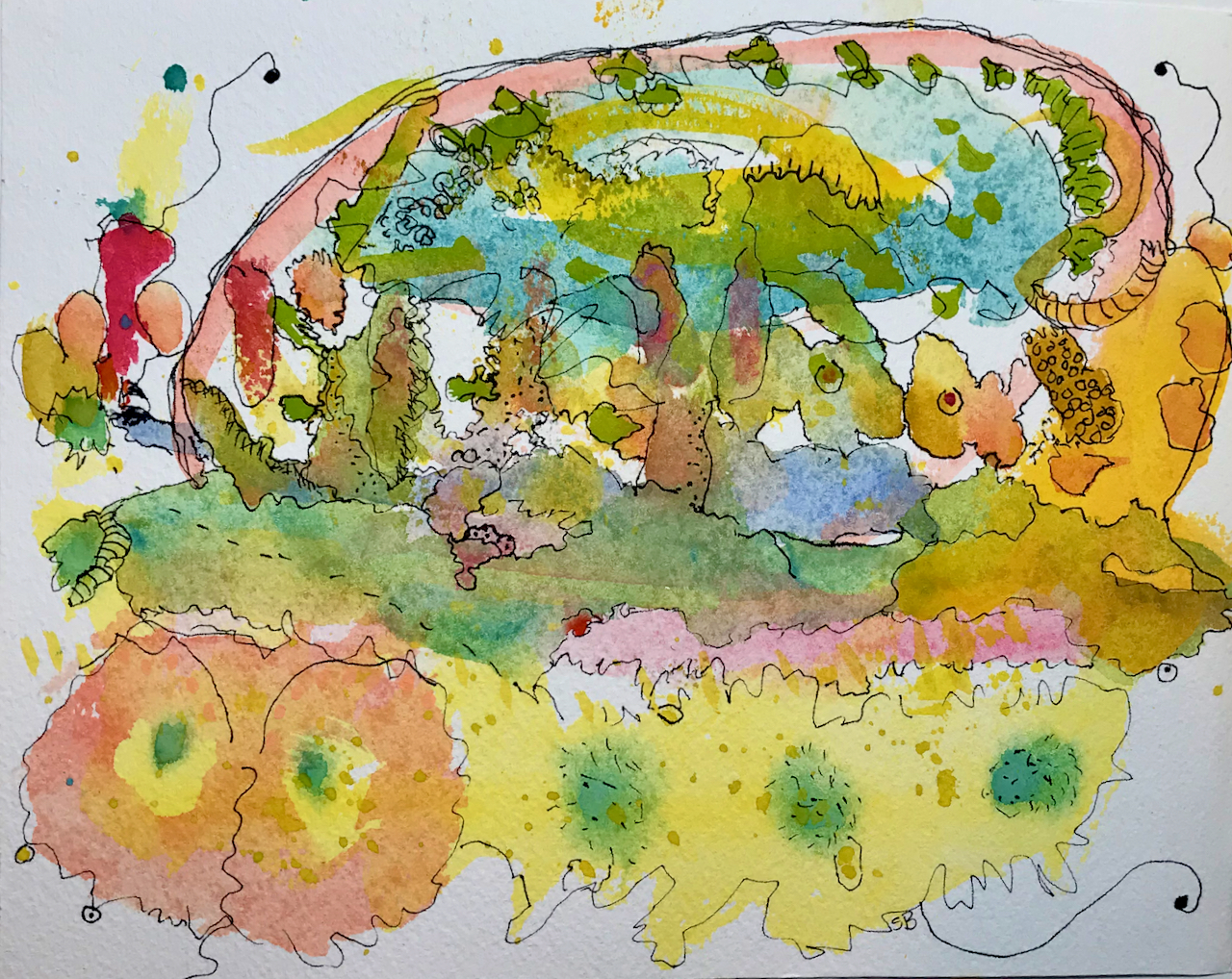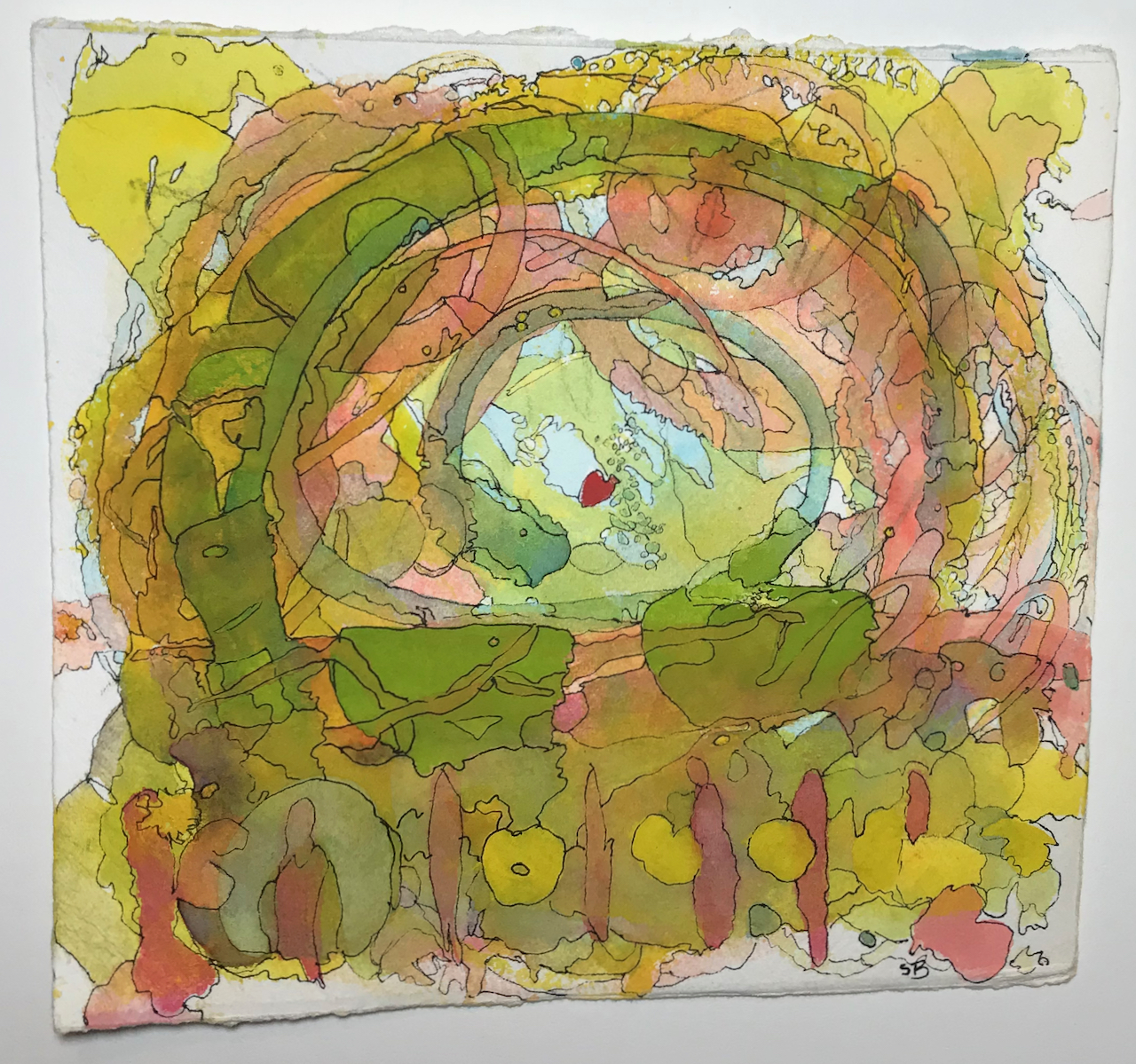 All the work is done over time with many layers working together to create each piece. I layer and re-layer until the final image is ready to emerge. With the most recent watercolor paintings, that process has proven to be especially challenging, and as a result this has been a rich time for exploration and growth. The titles of these pieces are of equal value to the paintings. Each tells a very short story.