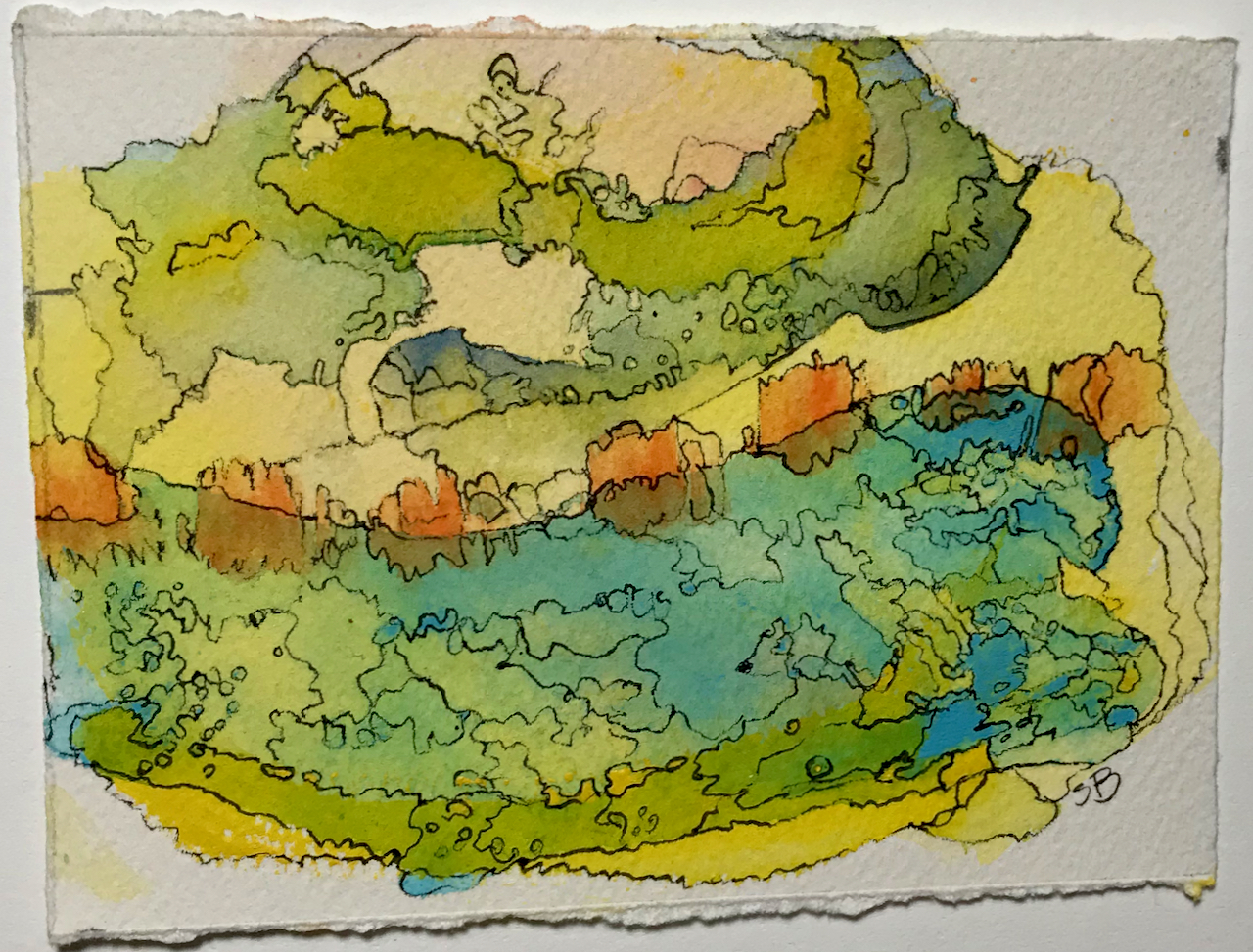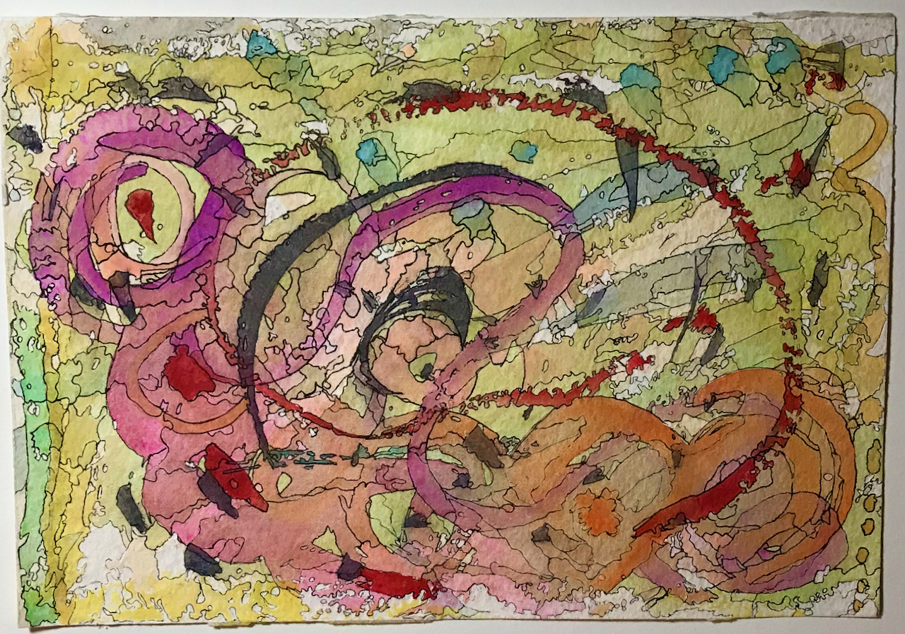For most of my life, I used oil paints, encaustic paint sticks, and mixed media. Due to a change in the studio space available to me, a few years ago I began using acrylic paint, and even more recently watercolor. There is joy and wonder in all of them!